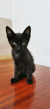 Обработан от паразитов и приучен к лотку и когтеточке. Окрас черный с еле заметными светлыми полосочками