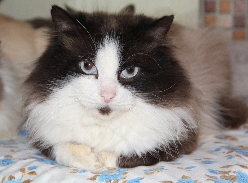 Знакомьтесь - это кот Элвис. Наверно, не стоит рассказывать, как он красив. Глаза цвета неба, роскошная пушистая шубка, укороченный хвостик, оригинальный окрас. Редкой красоты внешность!