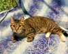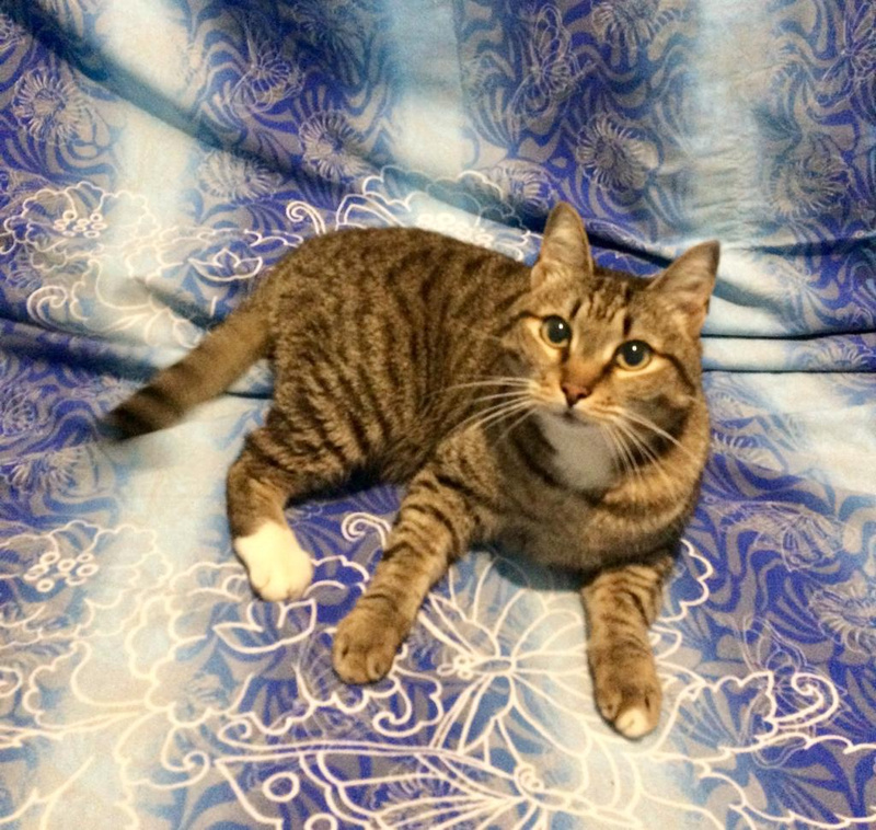 Сейчас на платной передержке, готовится к вакцинации. Кастрация, по наблюдениям, не нужна, так как уже кастрирован. Но будет проведена, если мы ошибаемся (ждём осмотра хирурга). Знает еду, миску, корм, ходит в лоток, играет.