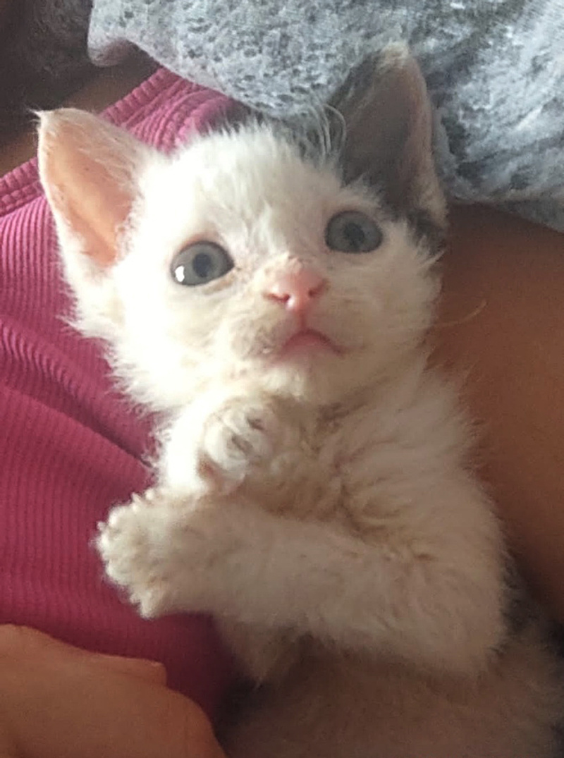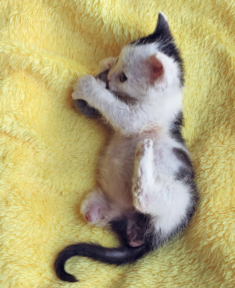 В заброшенном гараже кошка родила котят. Семейку обнаружили совершенно случайно, отвезли в приют. Кошка была ужасно истощена, а потом тяжело заболела. Сейчас она находится в клинике. А малыши в возрасте 2 недель остались без мамы. О них заботятся в приюте.