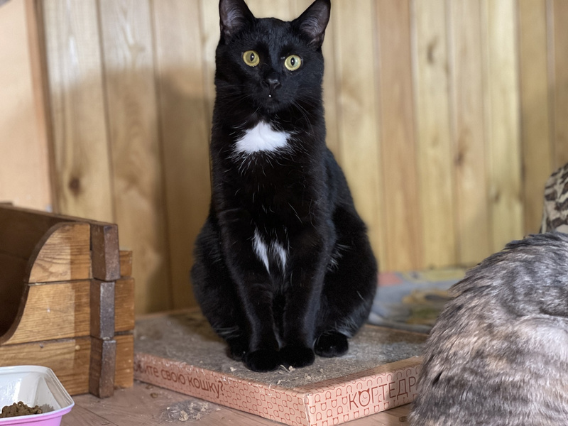 Отлично ладит с другими кошками, не боится собак, доверчив к людям.