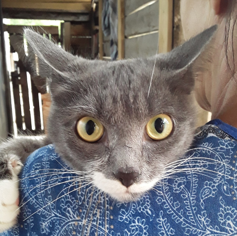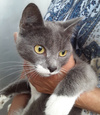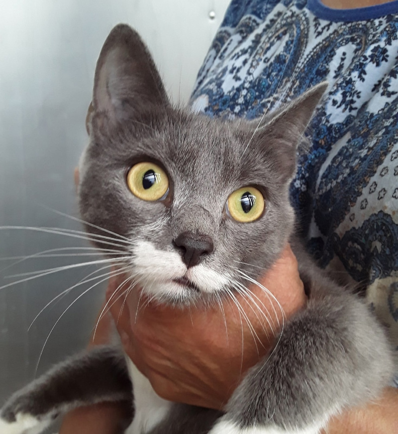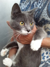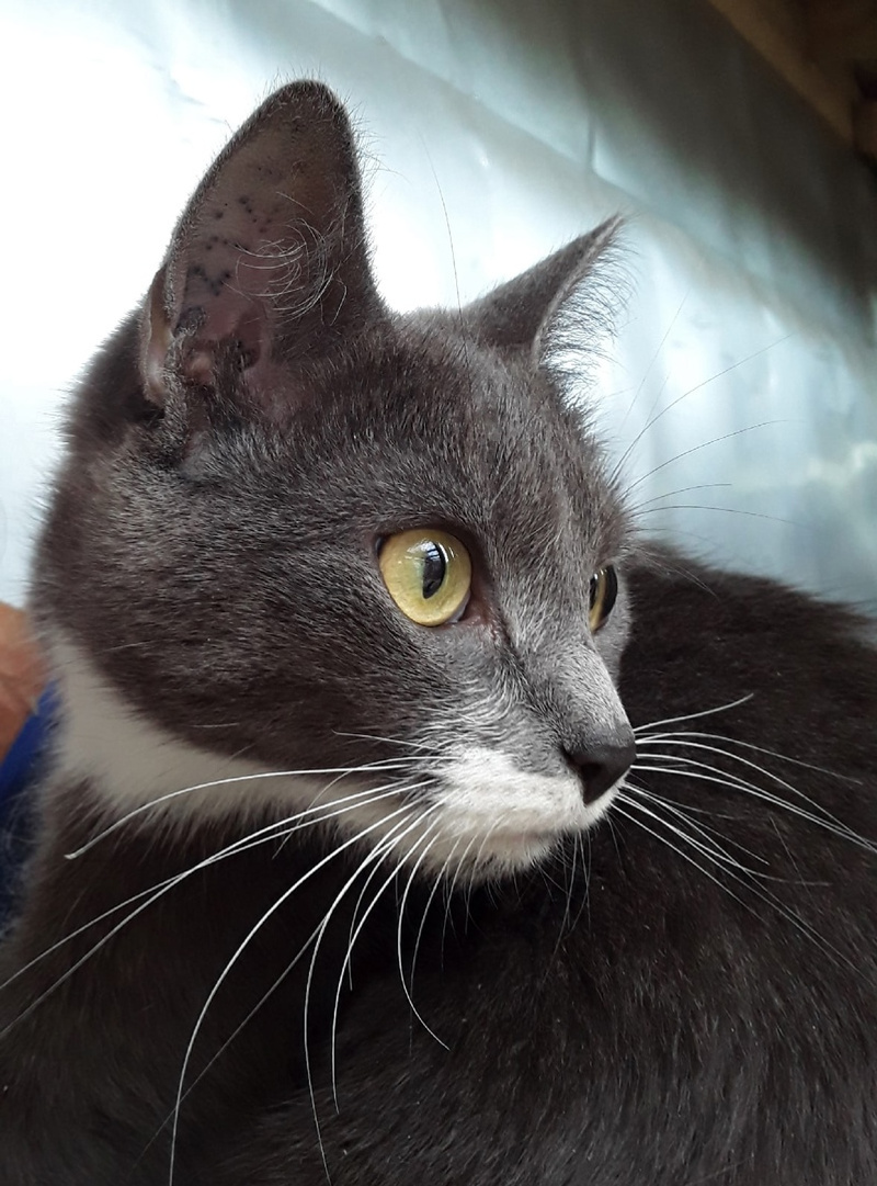 Кошечка замечательная! В голубой шубке, в белых туфельках, огромные жёлтые глаза. Очень ласковая и игривая. Отлично знает лоток, дома не хулиганит.