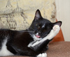 Отлично умеет дружить с другими кошками, играет с ними в догоняшки, любит гонять мячики, таскает их в зубах, ловить махалочки. Его излюбленное место-подоконник, он выслеживает птиц. Поэтому сетки на окнах должны быть обязательно!