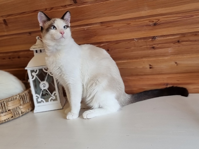 Котик пользуется биотуалетом и наполнителем тоффу.