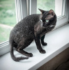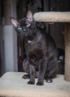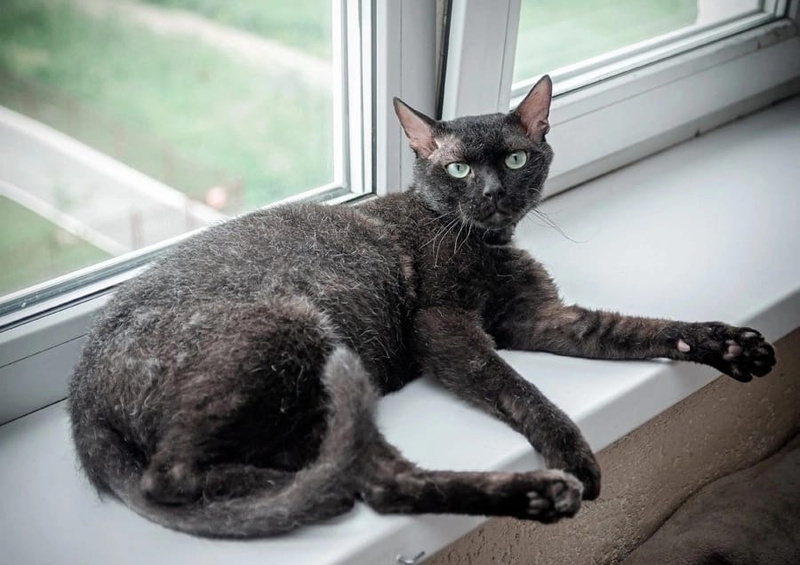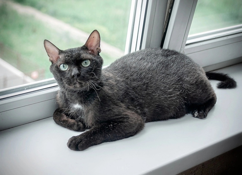 Похож на обезьянку больше по характеру, чем на кота! И внешне смахивает на примата!????Довольно крупный, на высоких ножках, с длинным хвостом. ???? Шерсть - один смех!) На ощупь жесткая. Без подшерстка. Котик не будет линять, как нормальные коты. У него скидывать нечего просто????