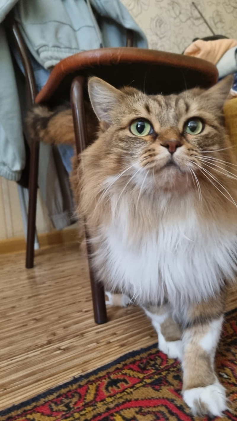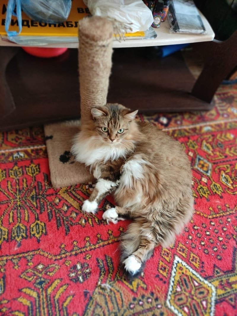 Кошечка ласковая, воспитанная, знает лоточек. Сейчас живёт в компании ещё 3-х кошек и собаки и вполне мирно с ними сосуществует. Но женщине, у которой она живет, уже тяжело ухаживать за таким количеством кошек.