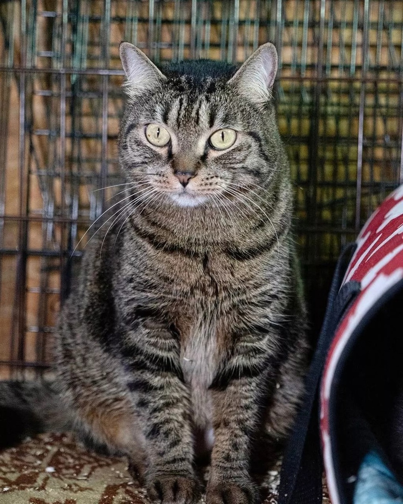 Но она не Кузя, её не привлекают закрытые пространства и тёплые уголки, она широкой души кошка. Уже обследовала каждый миллиметр клетки - своего жилища и с интересом рассматривает всё, что происходит за её территорией.