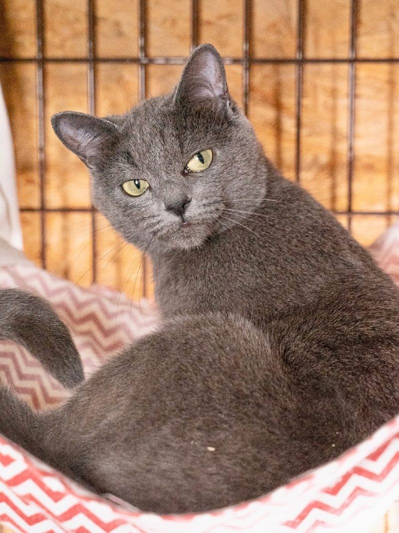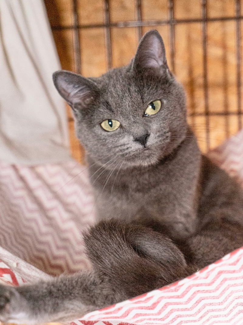 Кошку зовут Медея. Даже в приюте, живя в клетке, она выглядит, как королева. Гордый и слегка надменный взгляд, аристократические позы на "троне"...