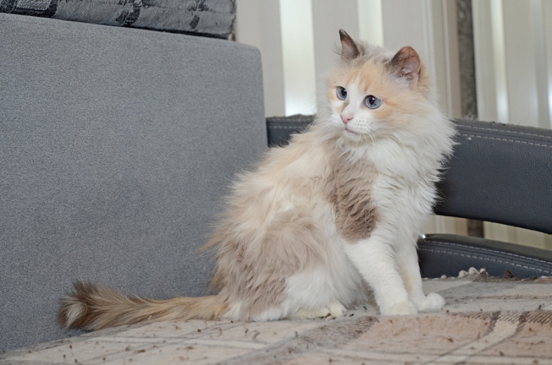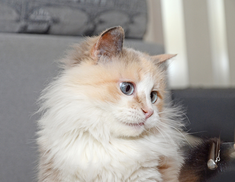 Снежана миниатюрная и очень красивая дамочка, глаза голубые, нежный трёхцветный окрас, мягкая, пушистая шубка.