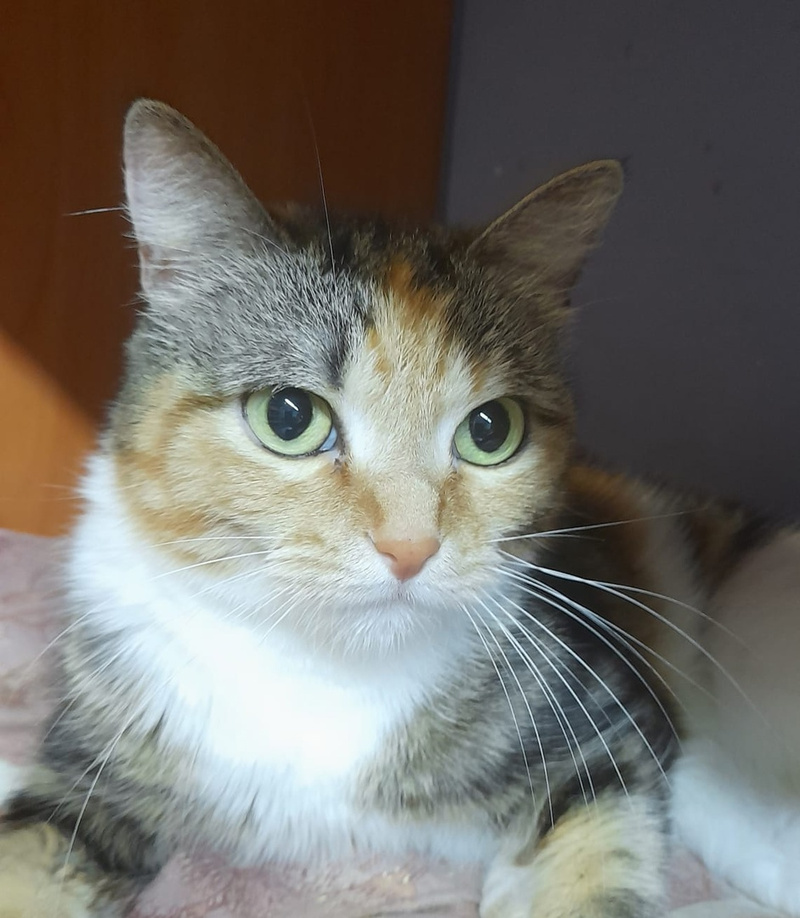 И заметили. Кошку подкинули в подъезд, она сидела там никому не нужная, и её заметили, забрали временно домой. Покормили, обработали от паразитов, стерилизовали и теперь ищут для кошки дом.