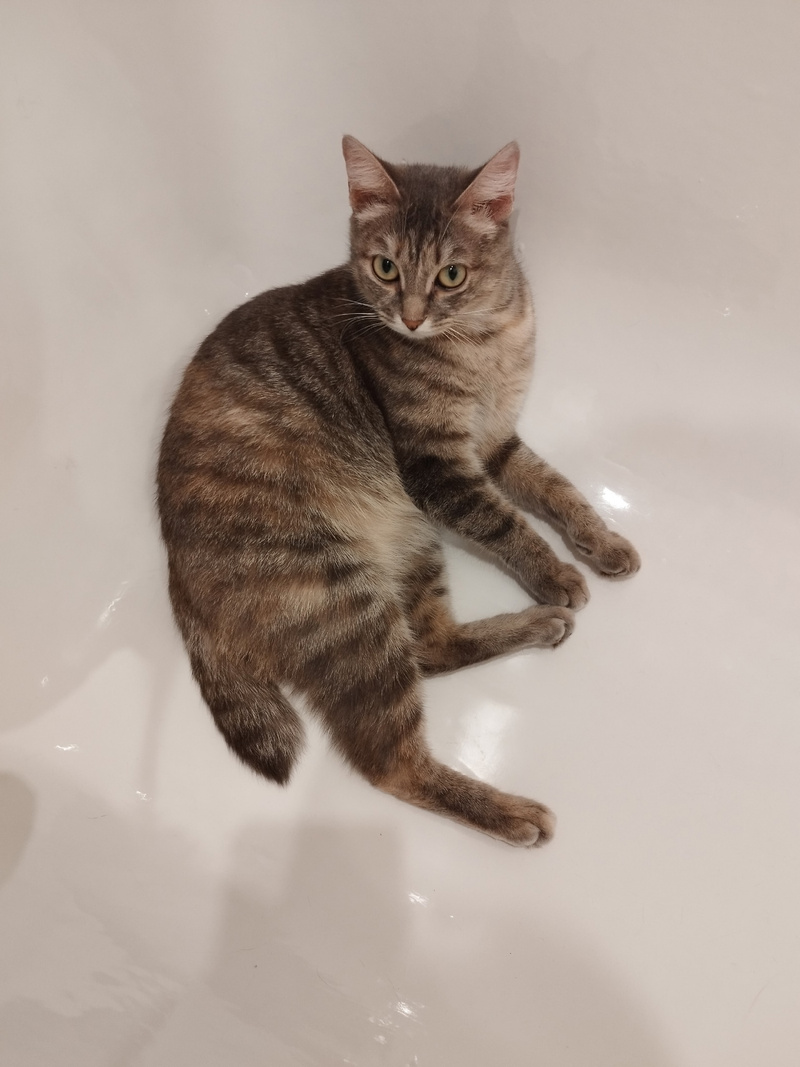 Скоро у Мурки стерилизация. Она осмотрена ветеринарами, обработана от паразитов, проглистогонена. Пошла в лоточек с наполнителем.