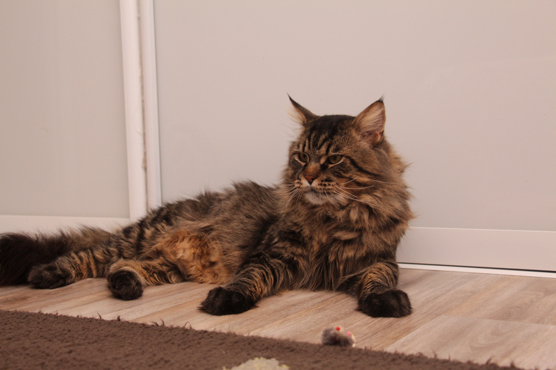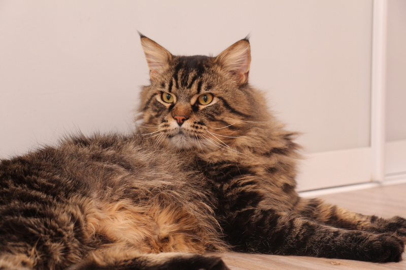 Тамерлан расположен к общению, он будет принимать ласки до тех пор, пока ему это нравится, но, если ему не хочется сейчас общаться, лучше его не тревожить, он все равно уйдет и займется своими делами, он всегда оставляет себе место для личного пространства. Неловко себя чувствует в компании кошек, возможно ему лучше будет в семье единственным домашним любимцем. Оказалось, что он любит котят, нежно за ними ухаживает... Вот такой чуткий и добрый великан.