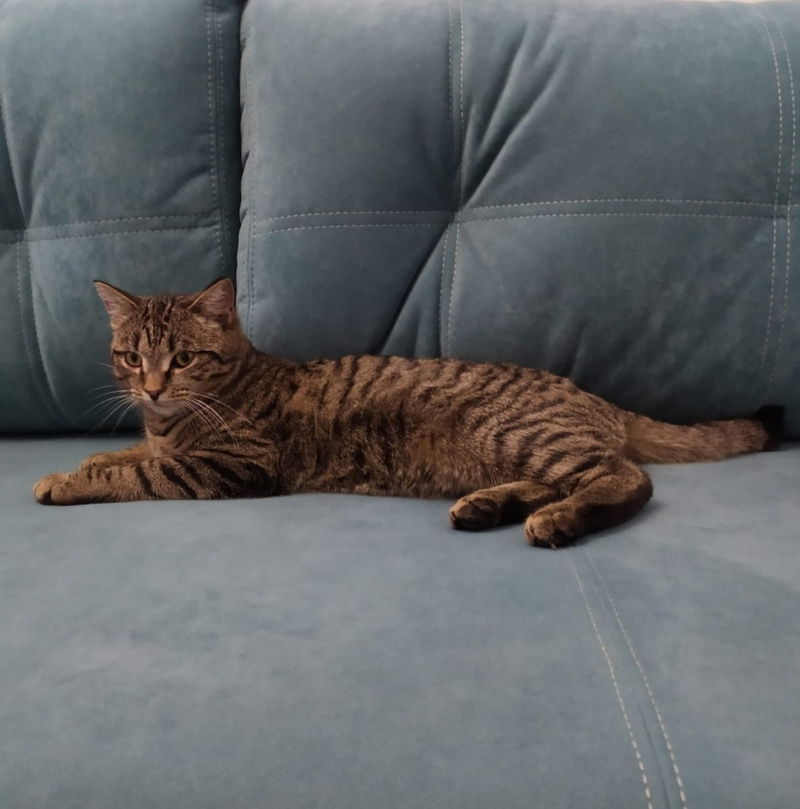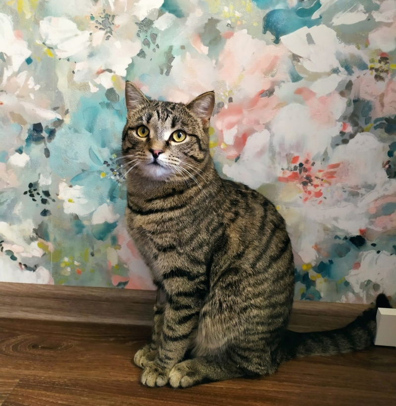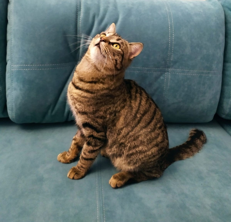 Васе около двух лет. Он кастрирован, лоточек на 5, ест сухой корм премиум-класса. Получает терапию ралтегравиром. Еще у Васико есть милая особенность внешности, придающая ему некую кокетливость, - изогнутый кончик хвостика.