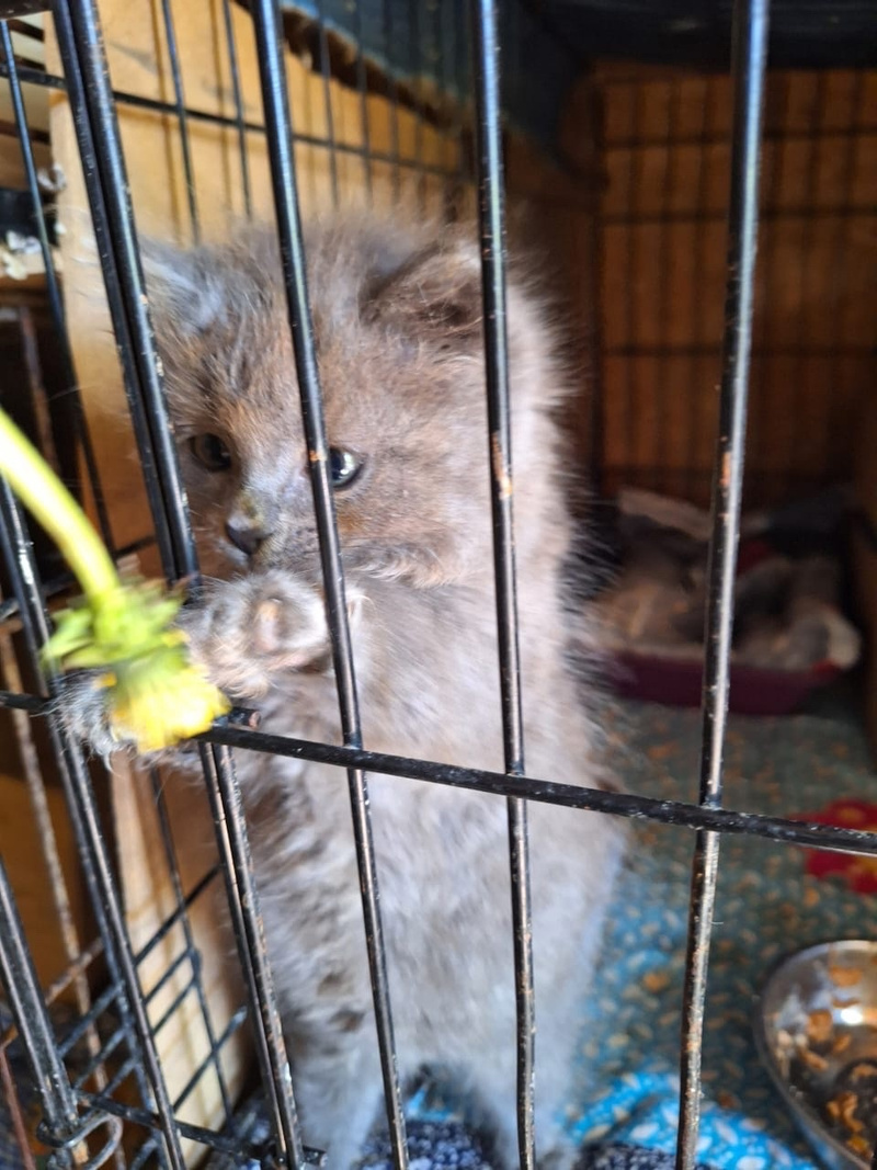Сейчас малышка в приюте. Накормлена, обласкана. Живёт в клеточке и очень скучает. Ведь она ребёнок, ей хочется играть, бегать, а потом забраться на ручки человека и сладко уснуть.