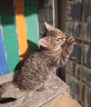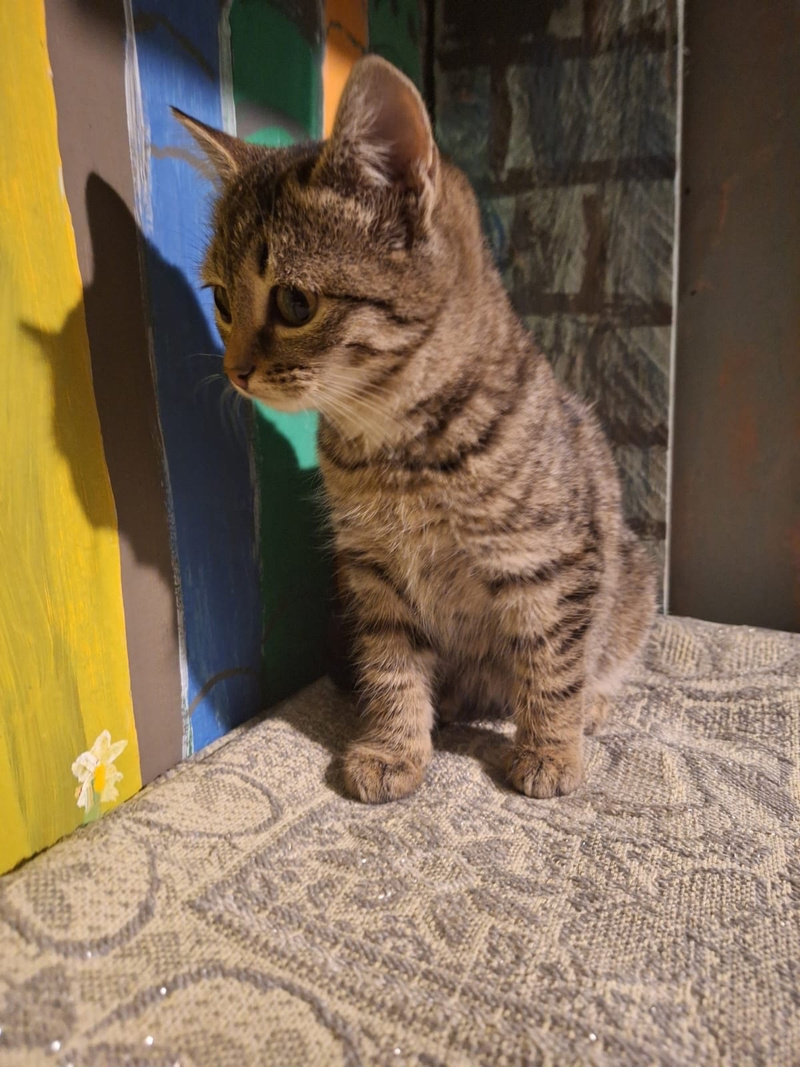 Полосаточке Дриаде около 3 месяцев, ходит в лоточек, чистенькая, здоровая, хорошо кушает. Поставлены прививки.
