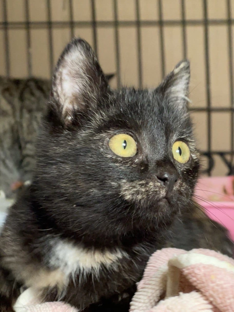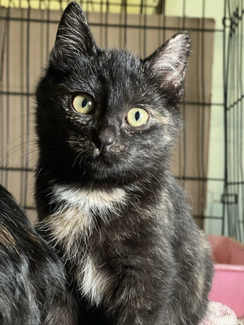 У неё нарядная чёрная шубка с золотой искоркой, круглая милая мордашка и любопытные глазки, которые наблюдают из клеточки, что происходит в приюте.