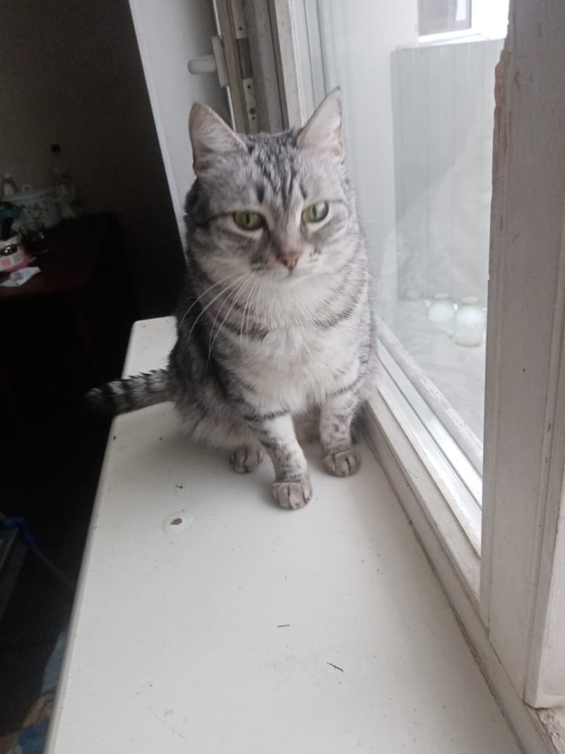 А кошечка чудесная, ласковая, добрая, в очень красивой серебристой шубке.