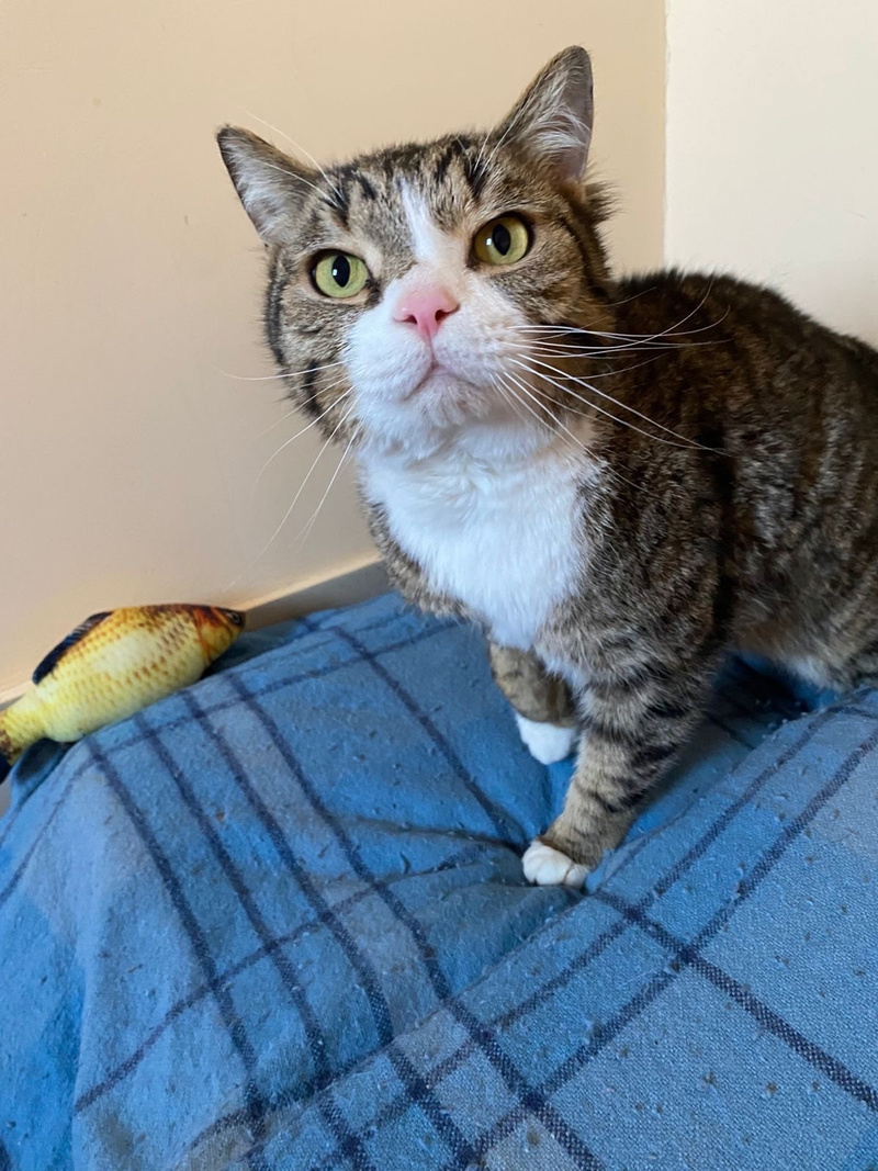 Почему Дошик? Потому что его привезли с дач в коробке из-под Доширака. Кто-то забыл своего кота на даче и спокойно уехал домой, совершенно не переживая, что кот на дачах зимой не выживет.