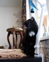 очень хороший котик, всем доволен, наслаждается уютом и сытостью.