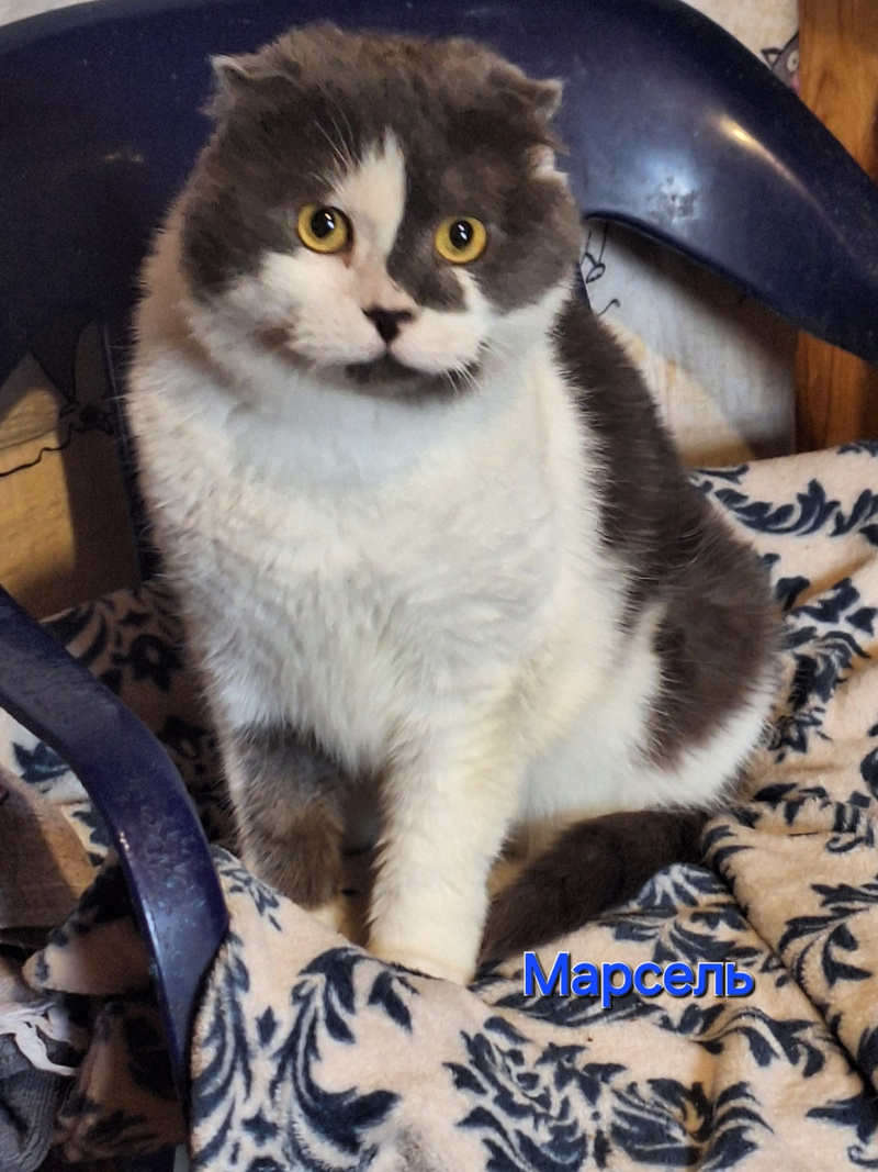 Марсель вислоухий шотландец. Вроде бы, порода ещё в тренде. Но Марселю не повезло по всем фронтам.