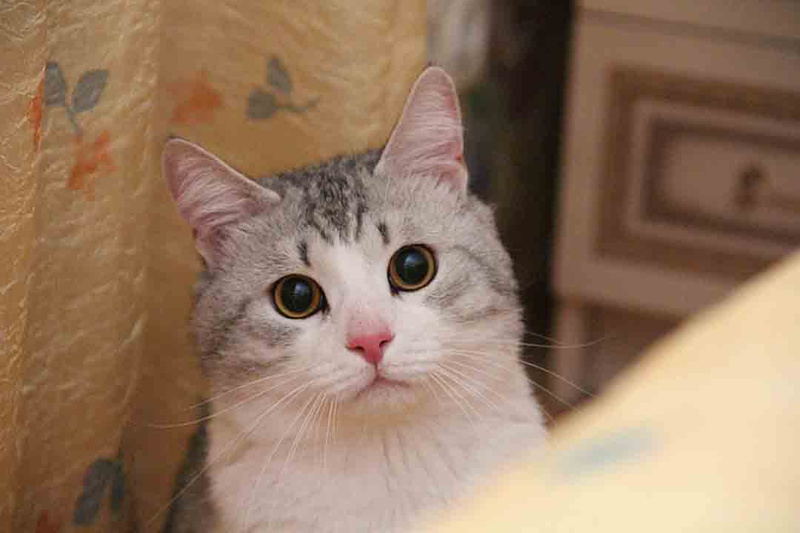 А сейчас это котёнок, нежный, очень ласковый, ранимый. Вероятно, жизнь его была не простой, потому что он пугается громких звуков и резких движений, но когда понимает, что опасности нет, сразу начинает ласкаться. Очень интересуется обществом кошек))) поэтому его смело можно брать в компанию к вашей любимице, Оскар её точно не обидит.