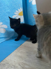 Малышкам чуть больше месяца, учатся кушать паштетики для котят, пользоваться лоточком. И у них вполне получается.