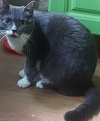 Сейчас у кошки всё хорошо, её откормили, привели в порядок, стерилизовали, обработали от паразитов. Прекрасно знает лоток и правила поведения в квартире. Возраст около года.