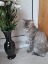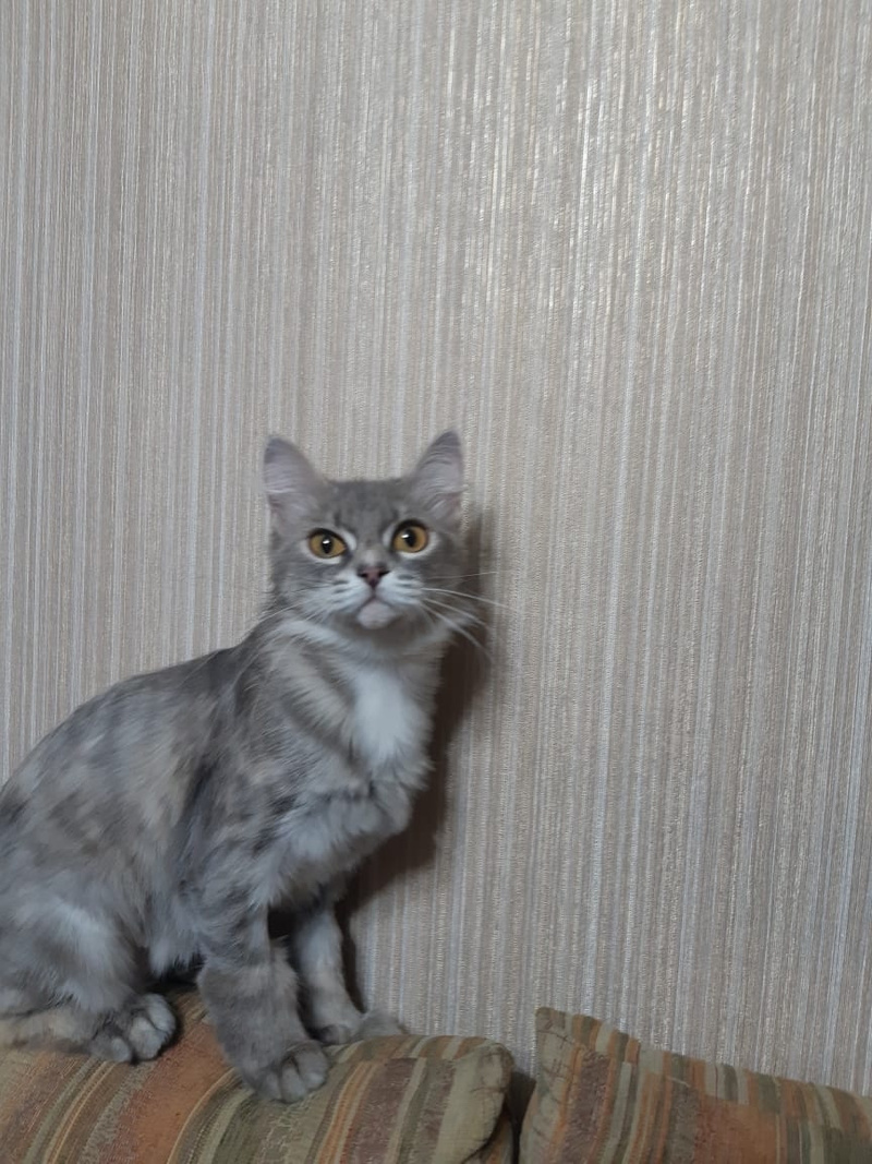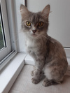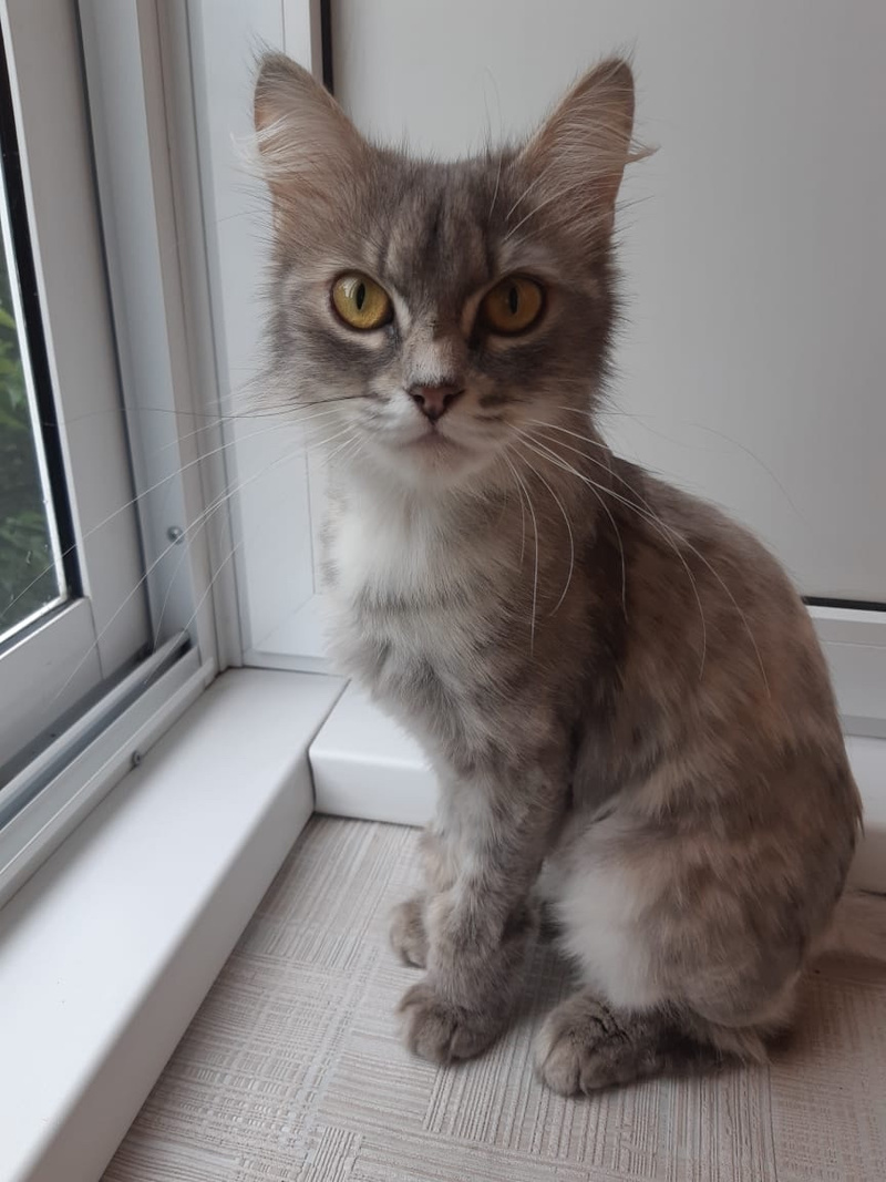 Эту изящную кошечку зовут Ася. Когда-то у Аси была роскошная пушистая шубка, но за время бродяжничества появились колтуны, пришлось Асеньку подстричь. Но и со стрижкой она красотка. Скоро новая шубка отрастёт и Ася опять стент пушистым облачком. Бытует мнение, что с пушистой кошки в доме много шерсти, на самом деле шерсть от пушистой кошки даже легше убирать, проверено лично и не раз)
