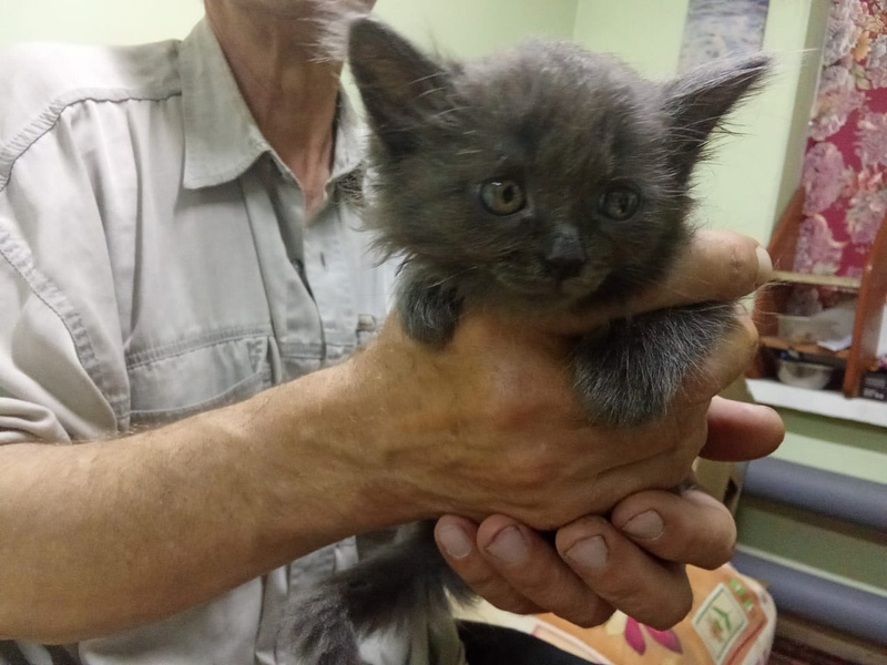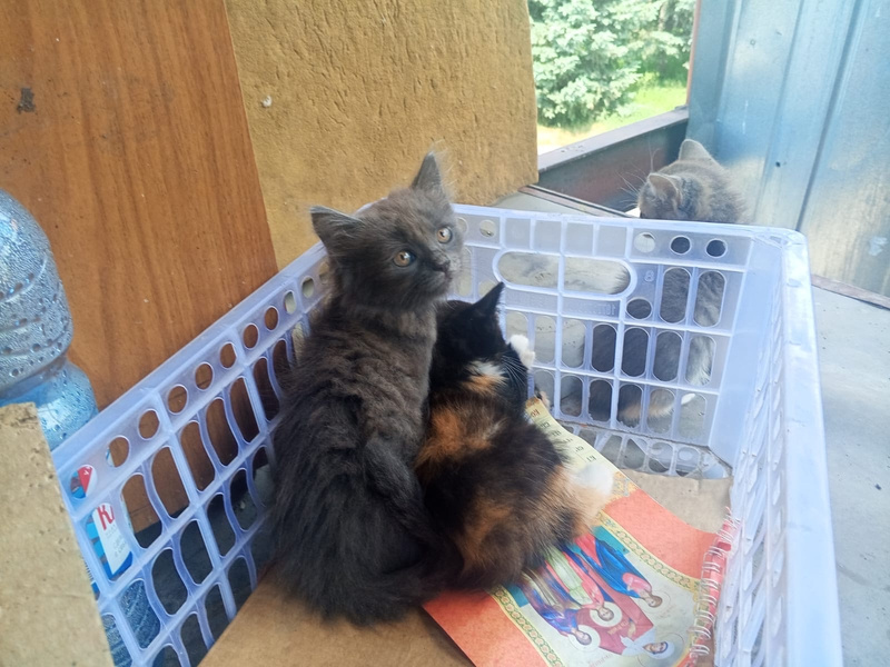 К людям в дом прибилась кошка, она оказалась с сюрпризом и через некоторое время родила трёх котят. Две трехцветных девочки и пушистый дымчатый мальчик. Тёмненькую трехцветочку пристроили.