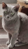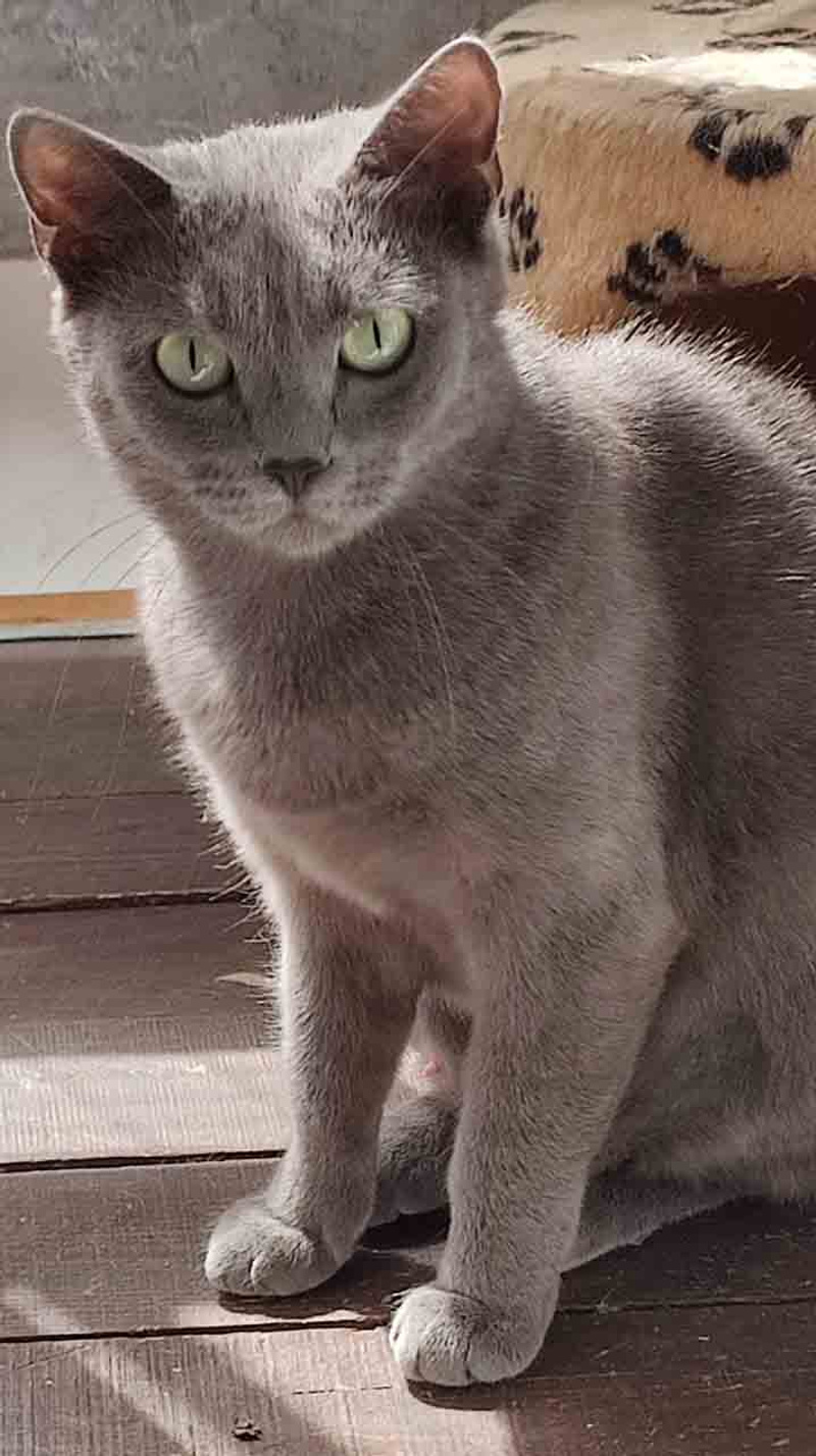 Эту красавицу с грустными зелёными глазами зовут простым русским именем Муся. Муся очень похожа на породу русская голубая, элегантная, с чувством собственного достоинства, но дружелюбная и простоя в общении, как все русские)