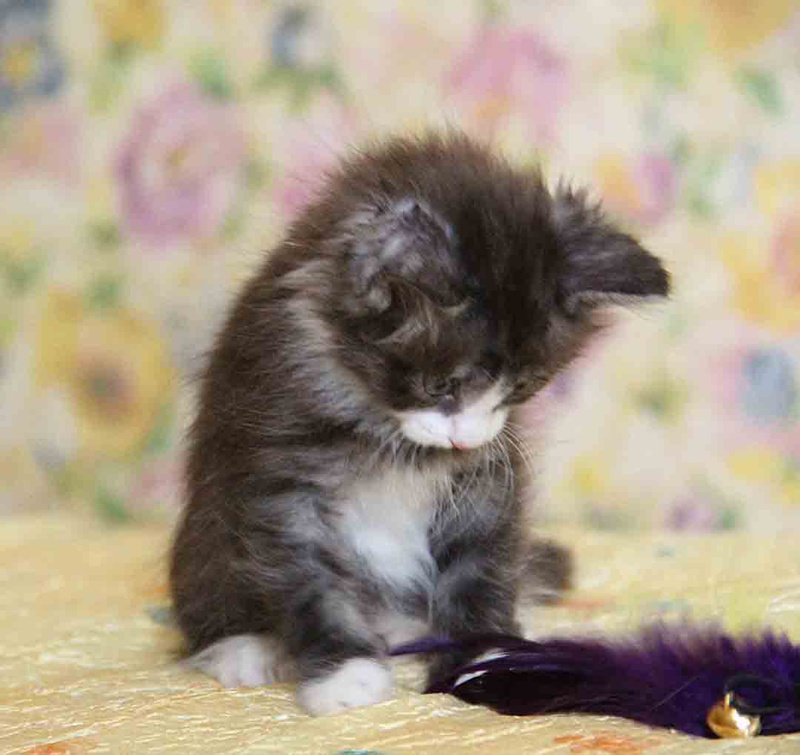 Малышка весёлая, игривая, общительная и невероятно любознательная. Умные глазки, мягенькая шубка, пушистый животик. Так и хочется зацеловать и затискать малышку! Но тискать Тоську нельзя, потому что она ещё совсем маленькая , ей всего 2 месяца. Поэтому не отдаём в семью, где есть маленькие детки, к сожалению, они ещё не умеют аккуратно обращаться с котятами.