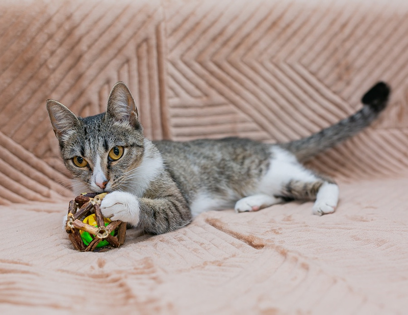 Полосатая кошечка с белой грудкой и в белых носочках ищет самых лучших хозяев. Необыкновенно умная и общительная кошечка. Ей 8 мес. В ближайшее время будет стерилизована. Приезжайте знакомиться и вы обязательно полюбите Кэсси