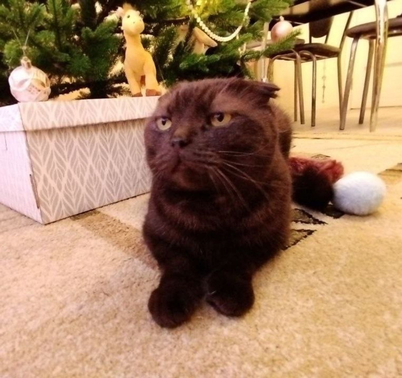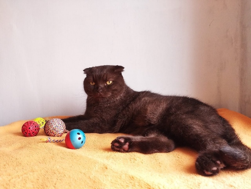 Это большой, брутальный, диванный красавец шоколадного цвета. Но в душе совершенно милый зайчик.