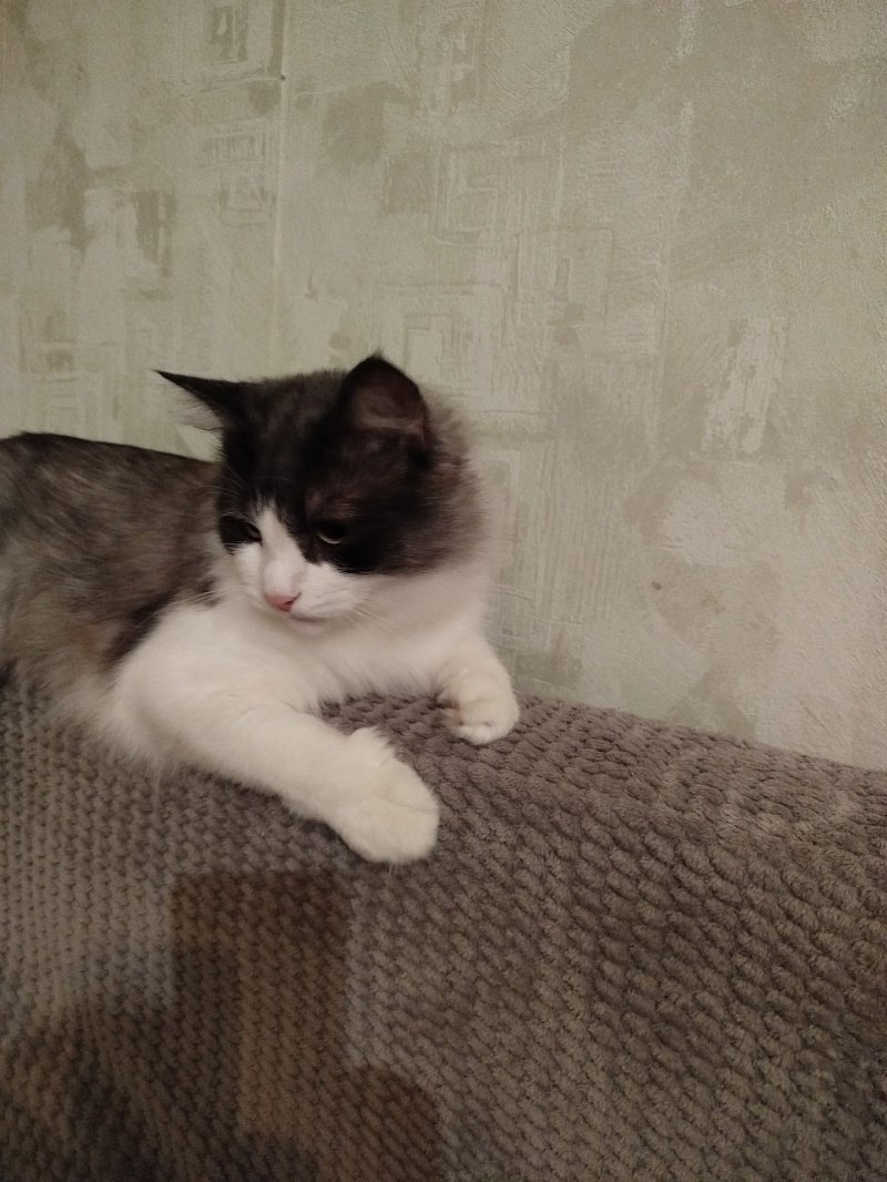 Котика зовут Феликс. Пару месяцев назад придя домой с работы обнаружила его в подъезде, тыкающимся в двери и плачущим от голода и одиночества????