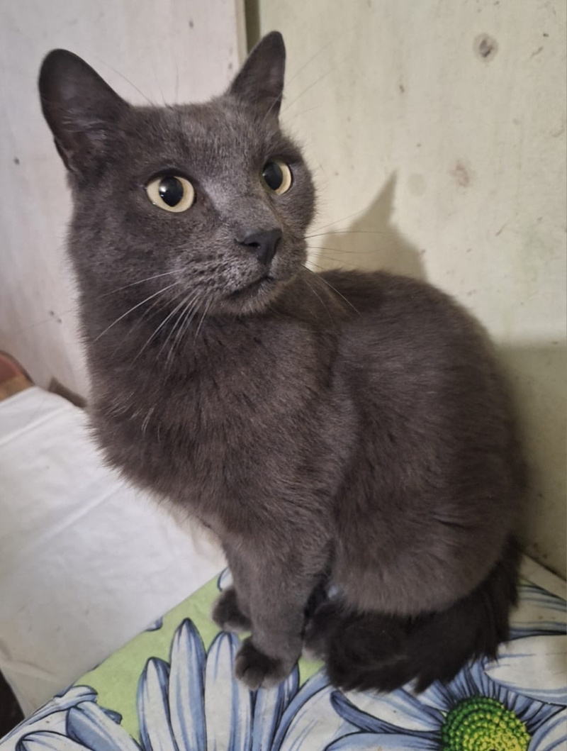 Сейчас кот живёт в приюте. Кастрирован, поставлены прививки, знает лоток. Возраст около 2 лет.