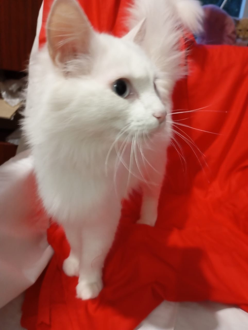 Луна-белоснежное пушистое облачко с голубыми глазками. Нежная, трогательная, любит красоваться и кокетничать, она знает, что красотка) Ей года 2