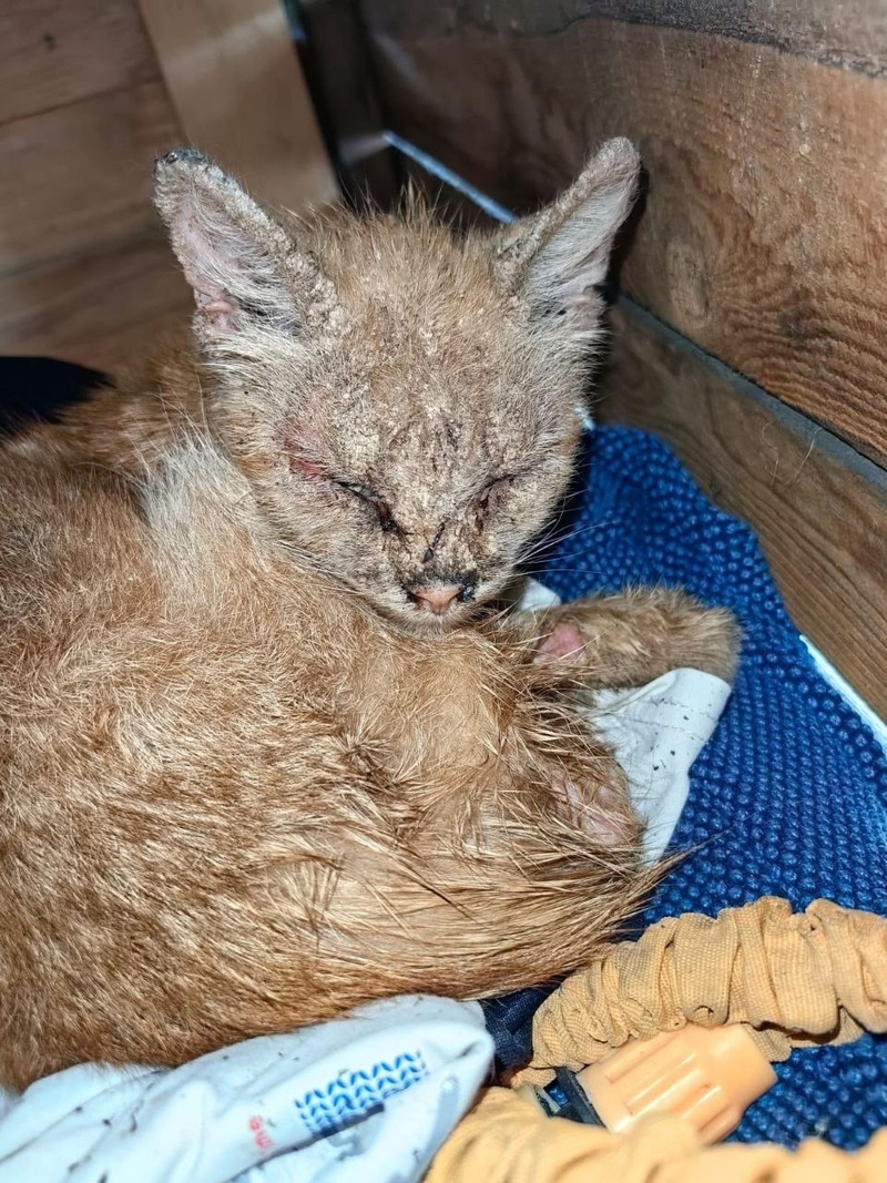 Симу нашли в Болотном, в ужасающем состоянии, спасать там её никто не собирался, кошечка тихонько чахла. Приют не остался в стороне беды, добрые люди съездили за Симой, привезли ее в Новосибирск. Всем миром собирали деньги на лечение.