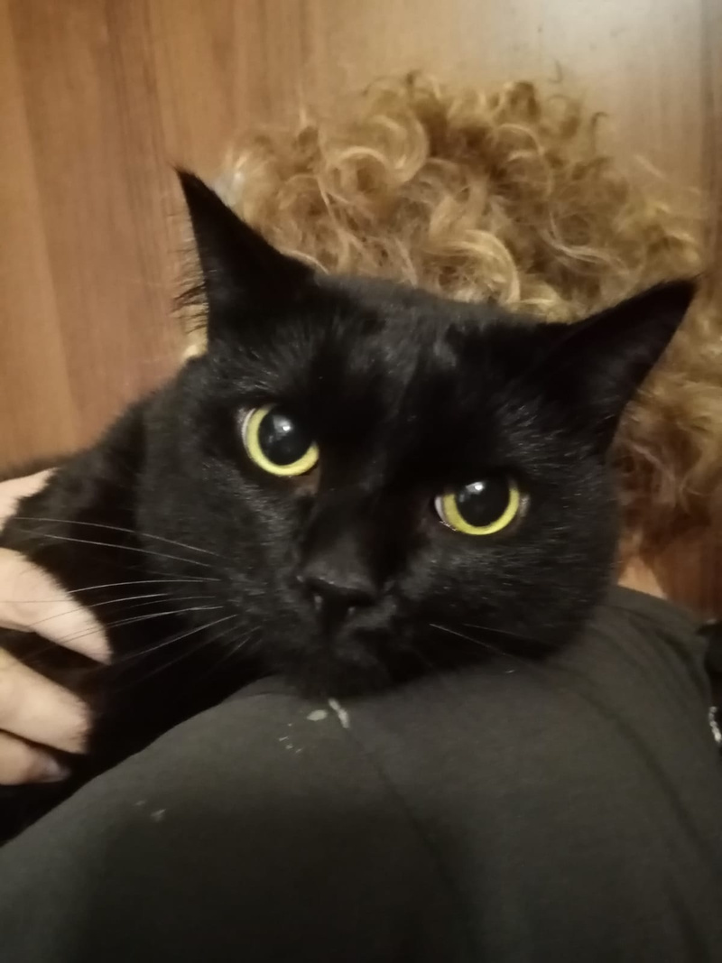 Она забрала временно Уголька на передержку. И кот расцвел! Отъелся, успокоился, идеально ходит в лоток, стал ласковым и компанейским.