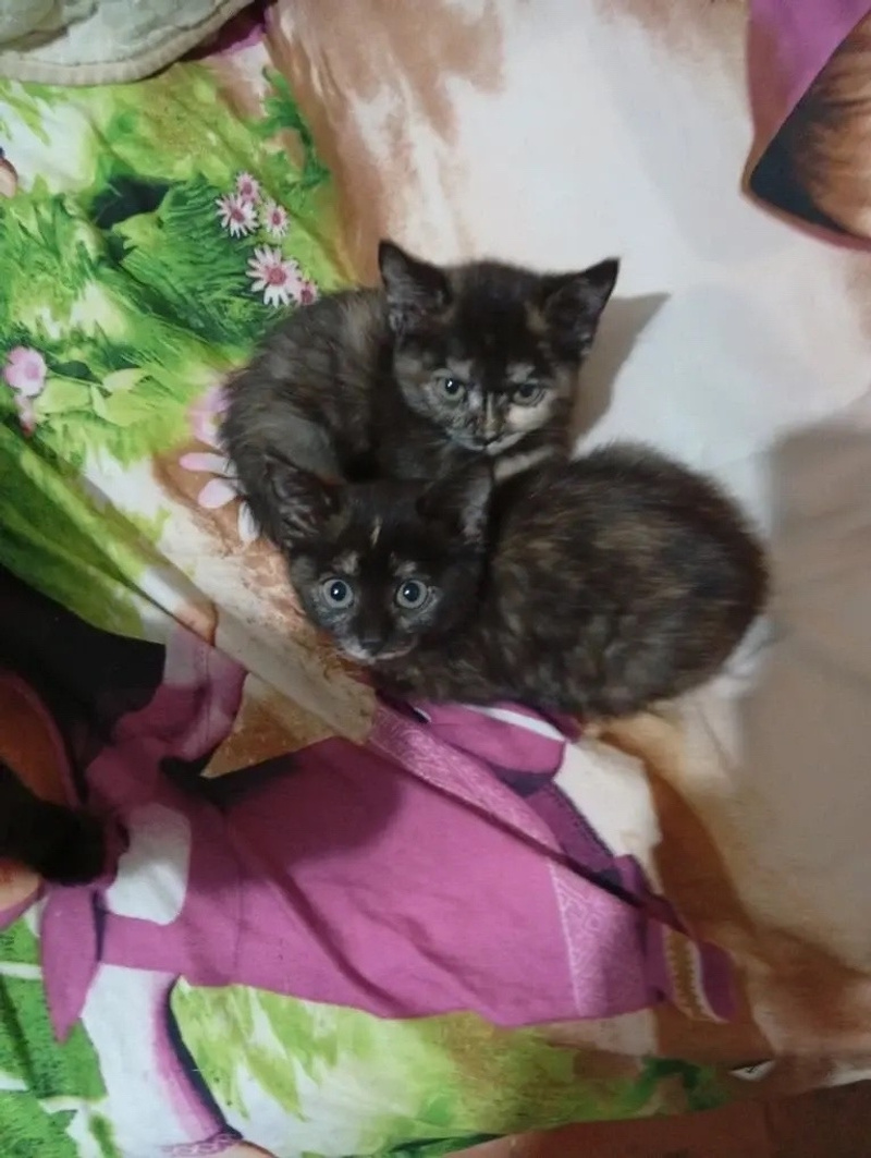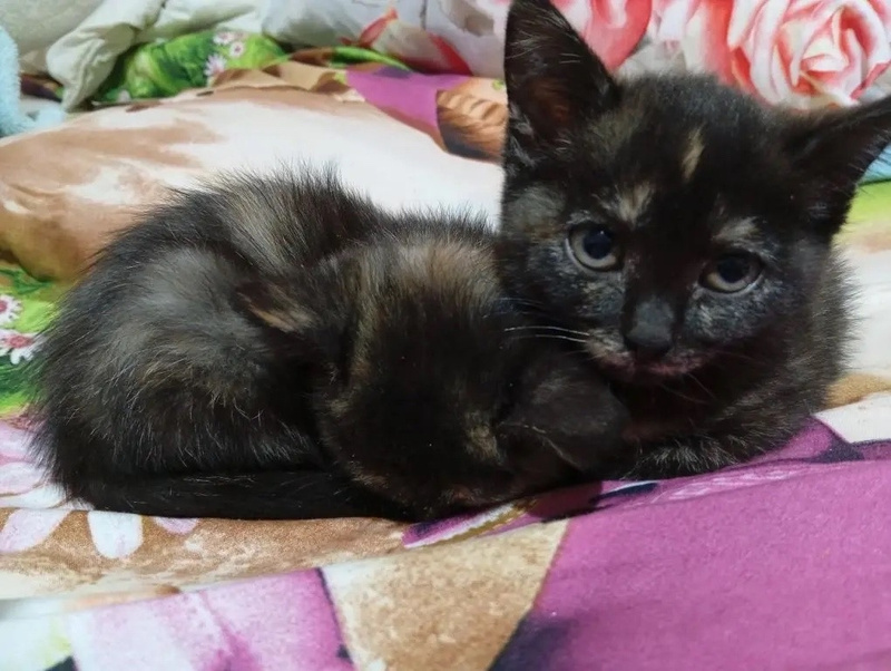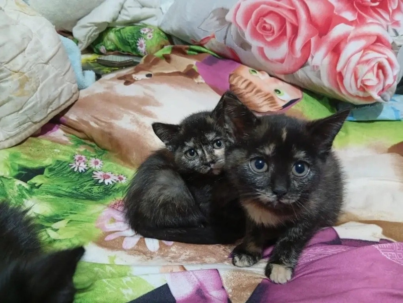 Этих малышек подкинули в коробке в подъезд. Их временно приютила семья, которая живёт не богато, котятам даже не на что купить корма, дают им то, что осталось со стола.